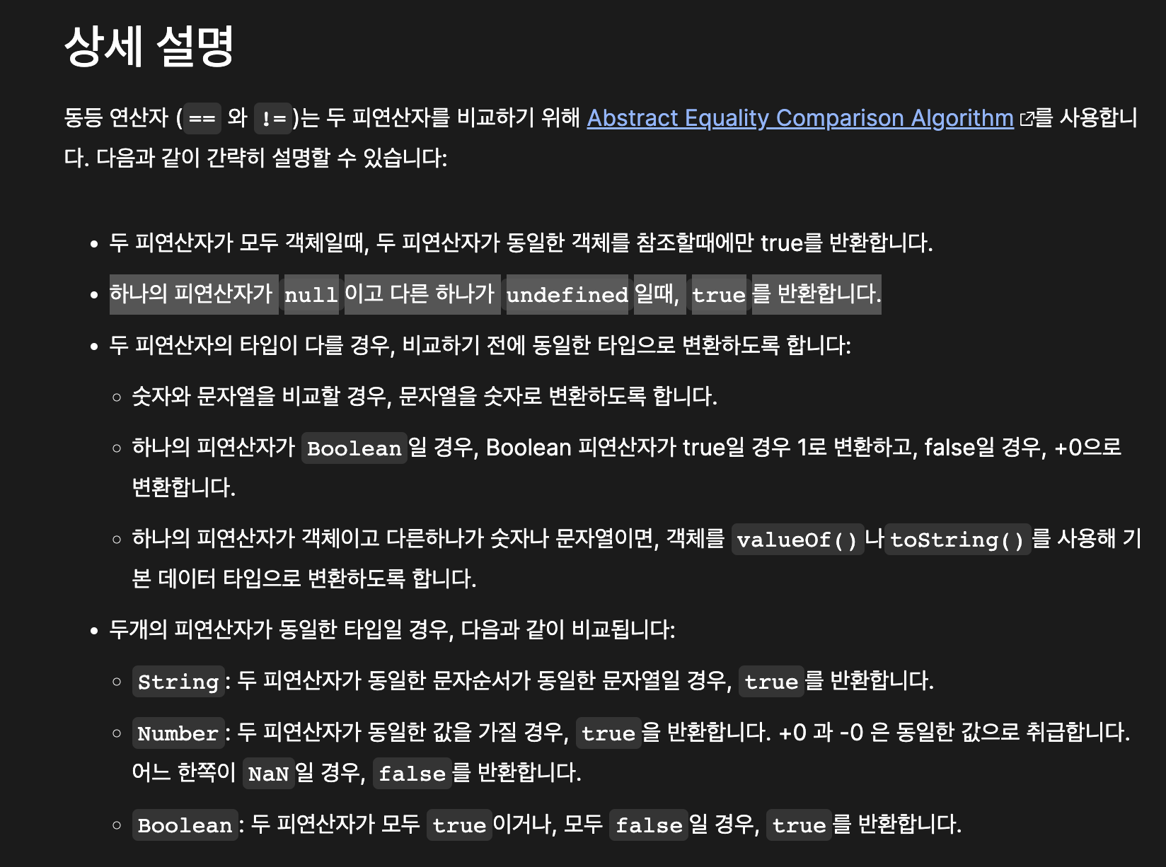 동등 연산자(==) - JavaScript | MDN